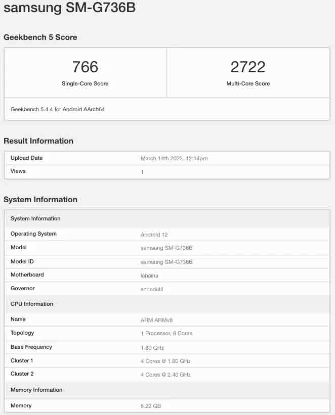 The Geekbench listing reveals that the phone’s model number is SM-G736B. Aside from that, the listing sheds some light on the upcoming rugged smartphone’s key specifications.